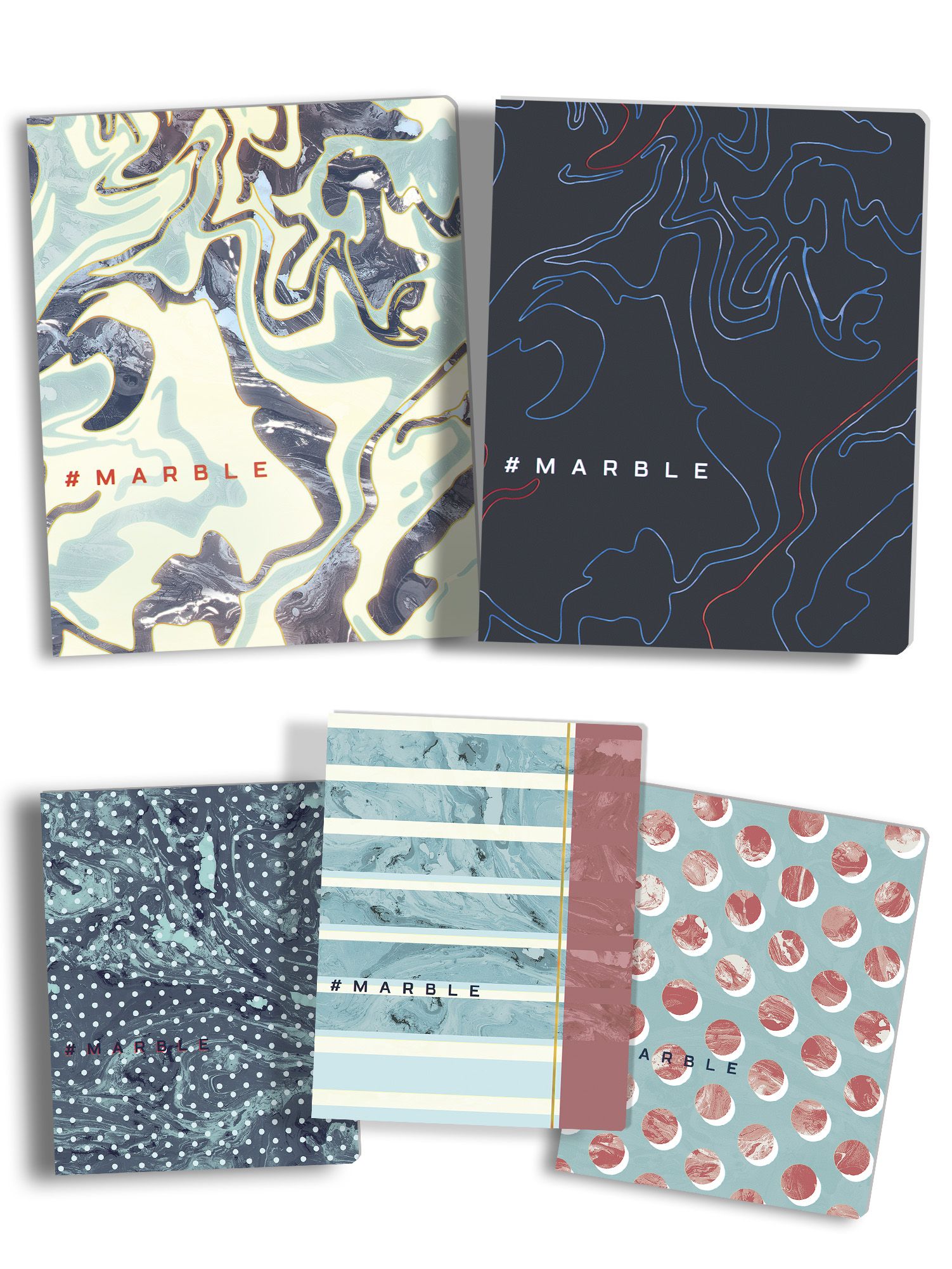 Освежите свой образ с нашим комплектом тетрадей Мрамор Marble. Этот набор из пяти тетрадей, каждая тетрадь 24 листа в клетку, идеально подходит для ведения стильных и организованных школьных и студенческих записей.