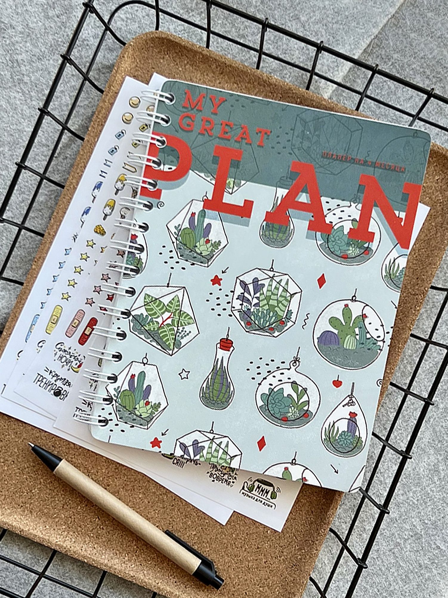 Милые кактусы на обложке: Обложка с очаровательными кактусами создает атмосферу уюта и станет вдохновляющим стартом для каждого дня.