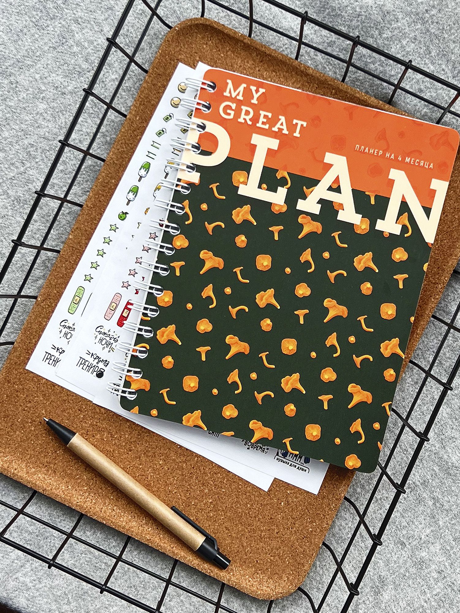 Лисички на обложке: Матовая обложка с очаровательным дизайном грибов-лисичек создает уютную и теплую атмосферу, приглашая вас к продуктивному планированию.