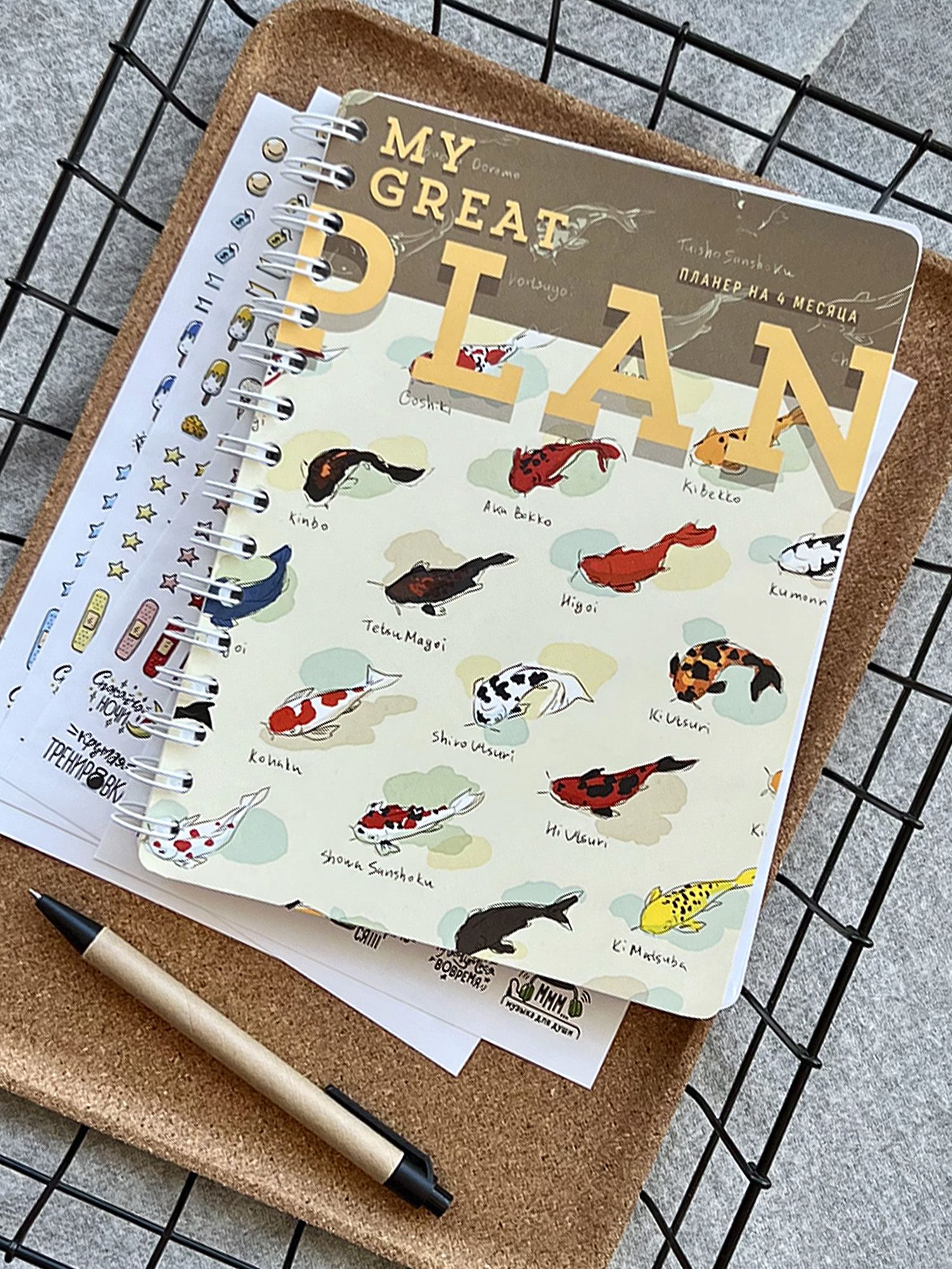 Японские рыбы на обложке: Матовая обложка, украшенная изысканным дизайном японских рыб, придаст вашему планеру уникальный и вдохновляющий вид.