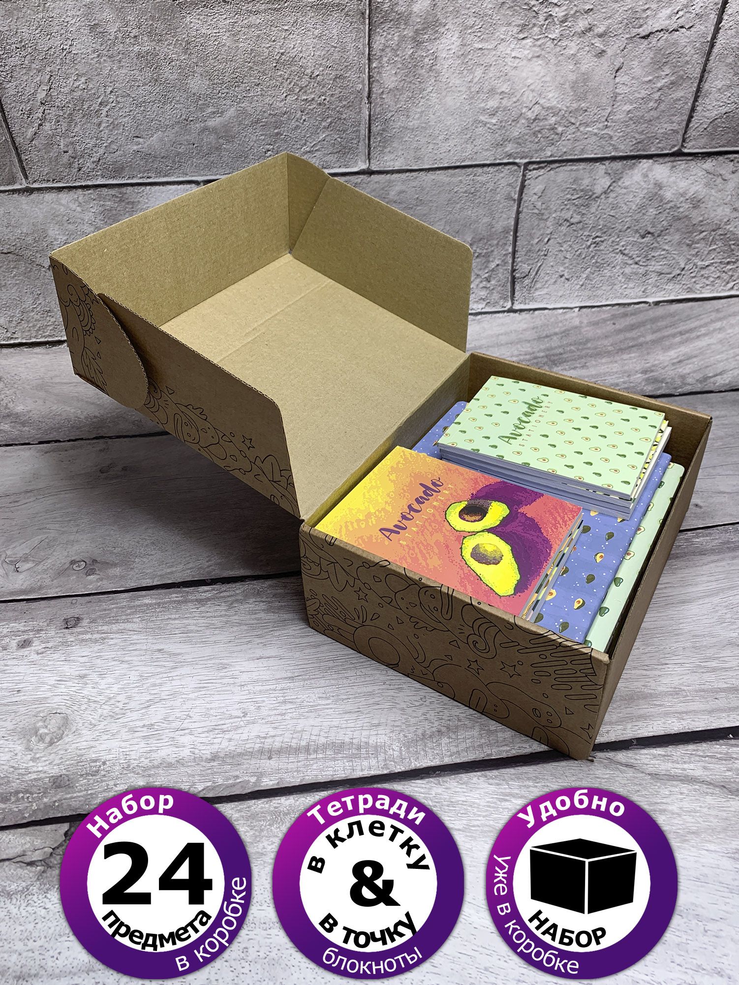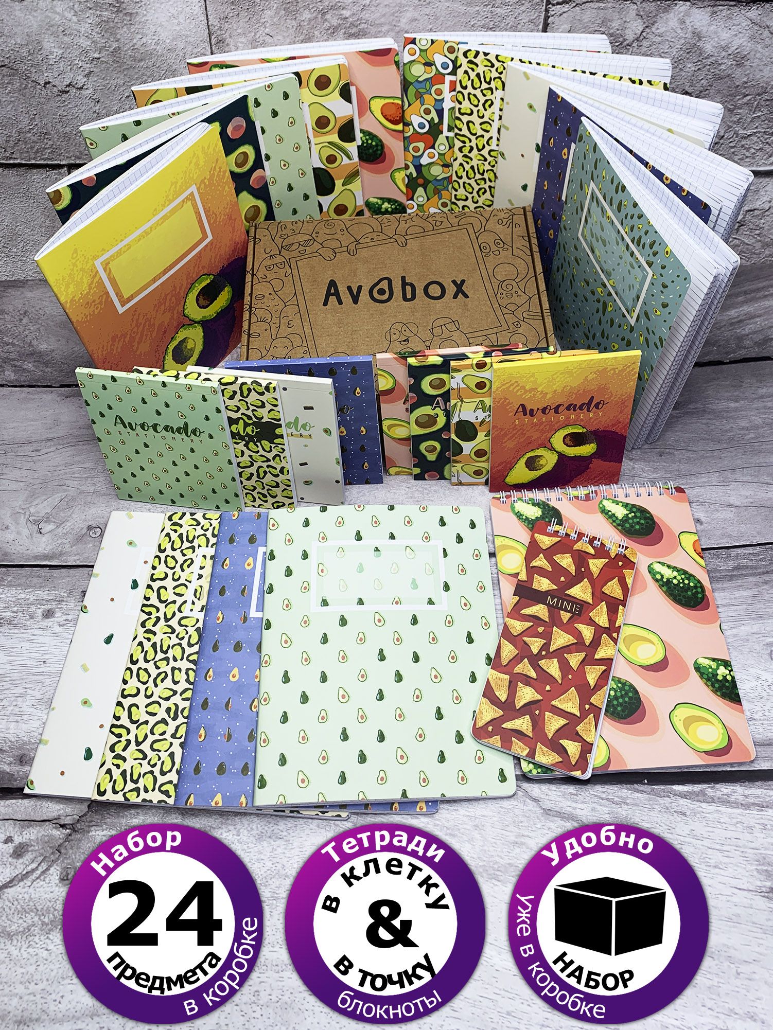 10 тетрадей в клетку (24 листа): Оживите уроки с 10 различными уникальными обложками, украшенными веселыми авокадо. Каждая тетрадь – это маленькое произведение искусства, подарившее вашему ребенку яркие впечатления и вдохновение для творчества.