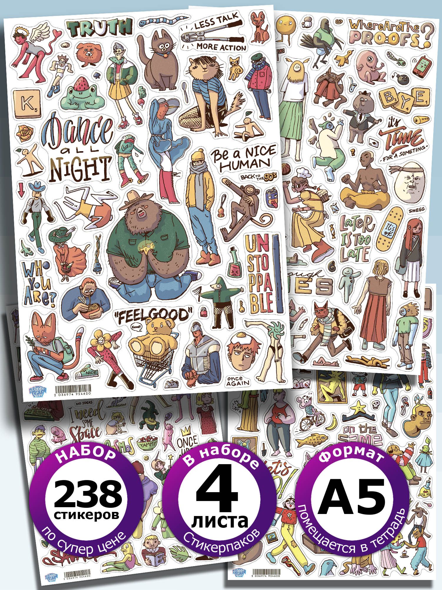 Набор стикеров наклеек необычные ЧЕЛОВЕЧКИ, 4 шт.